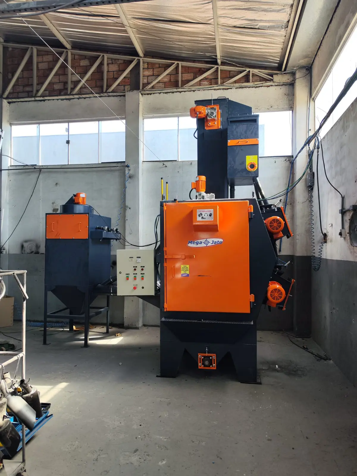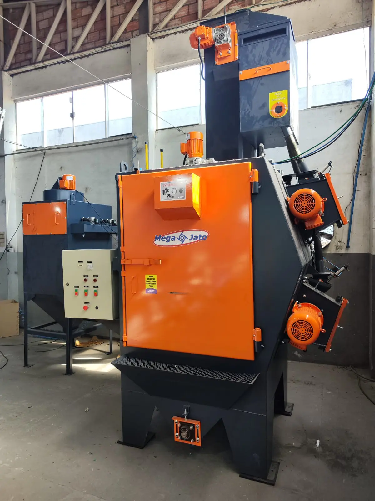 Todos os equipamentos são aptos a trabalhar com granalha de aço carbono/aço inox/zinco e podem ser fornecidos com coletor de pó com mangas filtrantes e vibrador ou coletor com cartucho e sistema jet pulse.
